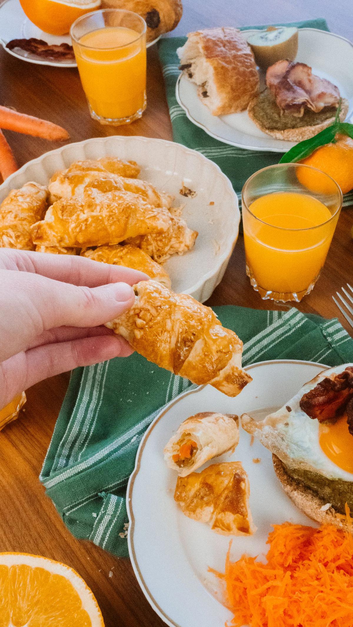 Les disposer sur une plaque, les badigeonner de jaune d’œufs et parsemer de comté râpé.